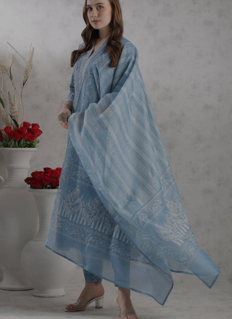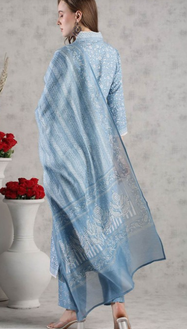 Blue printed Kurta with Trouser with Dupatta