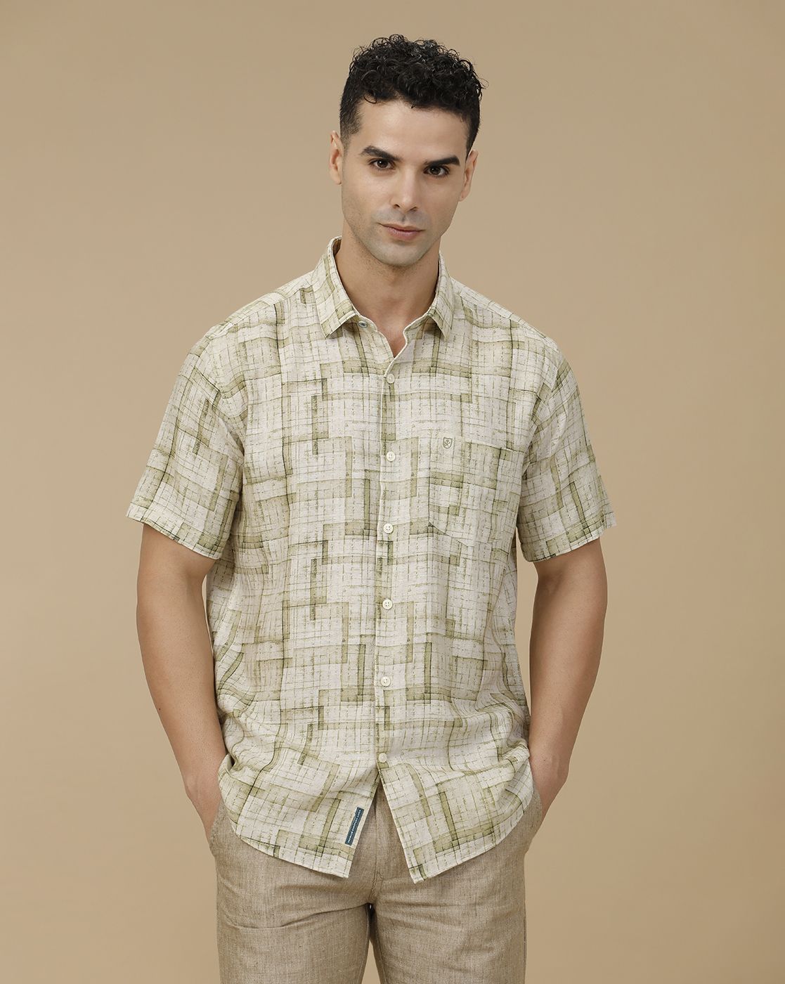 Green Printed Contemporary Fit Full Sleeve Casual Shirt