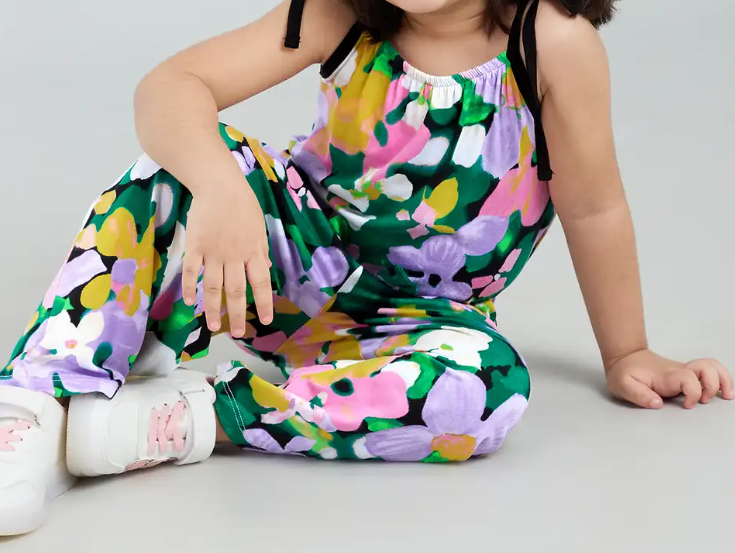 Bursting with sweet floral charm, this pure cotton jumpsuit is a sunny-day essential that wraps your little one in breathable ease and playful elegance.
