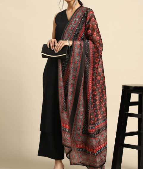 Be the first to review “Women Black Ethnic Motifs Pure Cotton Kurta with Palazzos & Dupatta”